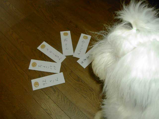 | クイズ:1 9月13日のベルたんの体重は・・・・・「30.1キロ」でした! クイズ:2 ベルたん一番のお気に入りは?・・・・「足型パフパフ」でした! 残念ながら体重の正解者はいらっしゃいませんでした。。難しかったかも・・・ お気に入りは、 ちょこパパさん・92さん・メリーちゃん・武さん・Moominmamaさん・あや子先生が 当たりしたので、この6名の中でで抽選させていただきました 抽選担当はバースデーガールのベルたんで~す! |