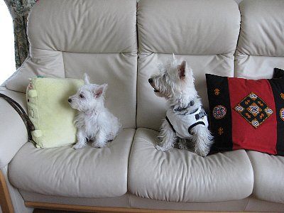 ミルキーちゃんはチェルシーの娘でもう三ヶ月半、毛がフサフサでお顔もすっかりウエスティらしくなっていました。