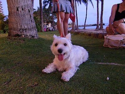 日の入りの写真を撮った後ウエスティを連れた日本人らしい方がお散歩していたので