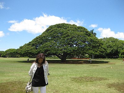 樹齢100年を越えるモンキーポッドという木だそうです。