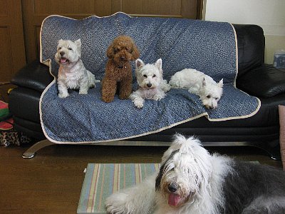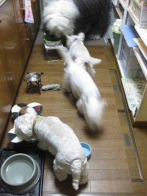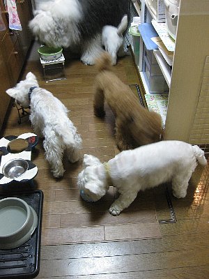 大人しいけどご飯タイムはしっかり参加、5ワンs入り乱れ~(笑;)