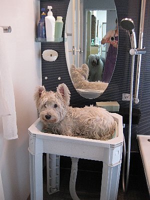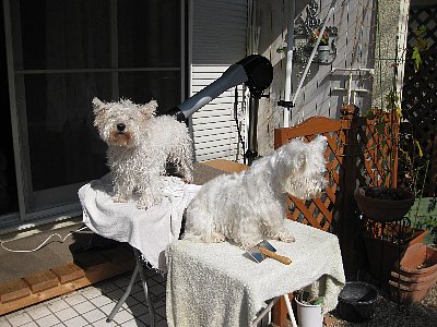 ちょっと?かなり?不安だったけど、テーブルの上で大人しく日向ぼっこ♪していてほぼ乾き^^チェルシーと入れ替わりあとは楽々の仕上げ。