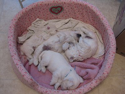 ピンクのベッドに真っ白な白玉ちゃん、かわゆいですぅ~☆