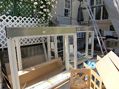 休みが明けて2階の工事開始、窓をペアガラスのサッシに入れ替えします。
