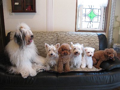 白犬親子三代と茶犬親子+セーラ以外の子育てしたベルたんの総勢6ワンs(笑)