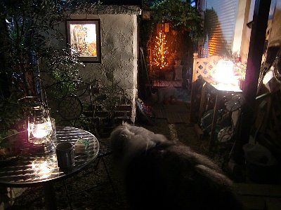 猫の額;な狭~いマイガーデン;ですが、ランタンに灯をともしたら「七難隠して」いい感じでした(*^^)v
