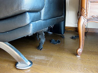 留守の間にソファの下に潜って遊んでいたらしい。。。
