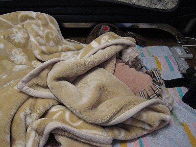 さっそく毛布に山がみっつできました。。。