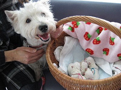 一息入れ昼に獣医さんで健康診断 元気な白玉4姫です