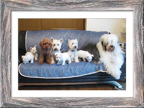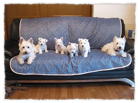「白犬親子三代」と「我が家のむすめ達」の記念写真です。